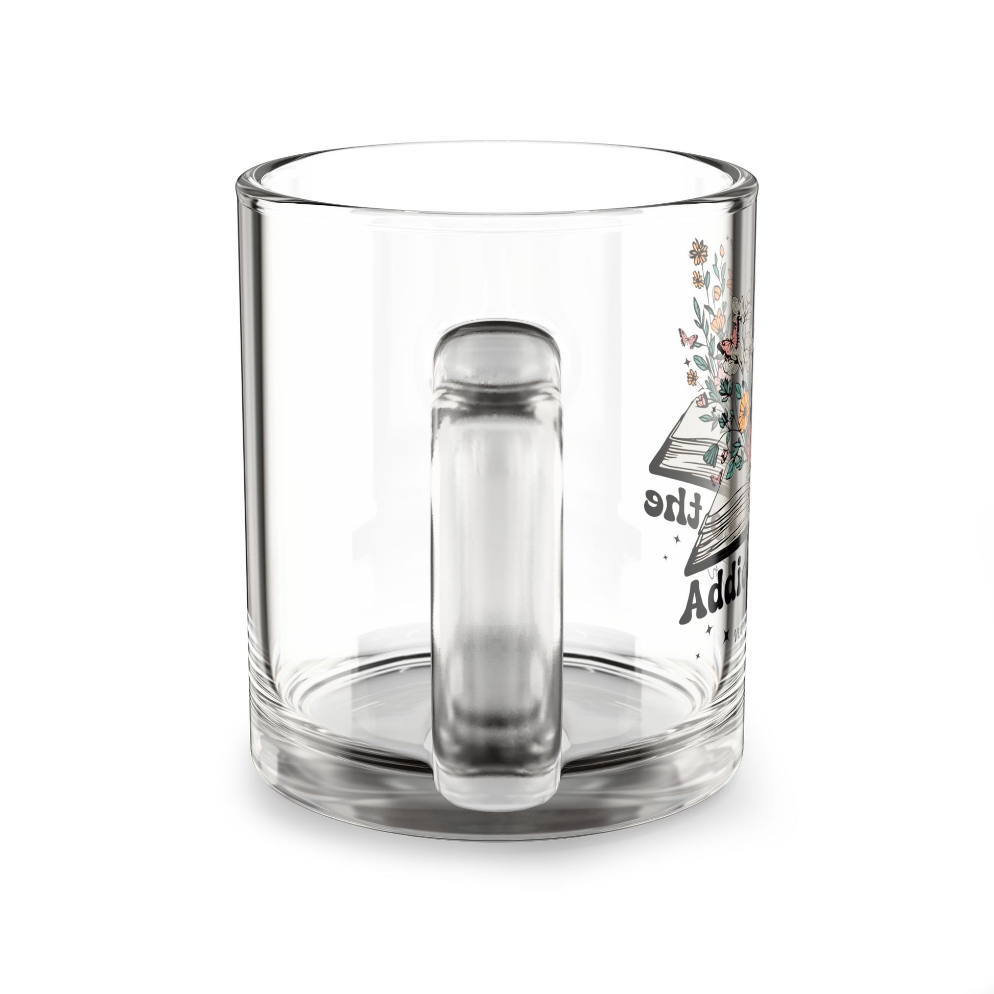 Glass Mug — "Addicted to the Next Chapter" Floral Book Lover Coffee Mug, 10oz